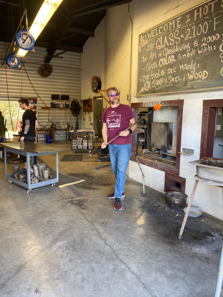 When I arrived, for the first time to Wimberley, TX, one of the first unique attraction spots I discovered and decided to check out was Wimberley Glassworks! Wimberley Glassworks is a popular glass artwork gallery and studio. It has hundreds of beautiful glasswork sculpture designs out for display, that is also available to purchase. This attraction made it on my list because not only is it enjoyable looking at beautiful art, but it also gives you the entertaining opportunity to witness the process behind part of the sculpture’s creation. While visiting, that’s when I discovered that some of the artists of the famous glasswork, also display a live showing for the customers to enjoy. During the showing, the artists demonstrate to the audience behind the process of how the sculptures are truly made—allowing the unique experience of making the designs right in front of you. This all happened right in front of my eyes! Not only did it sell unique glasswork, but it also allowed the visitor to experience an interesting moment of getting a look into the behind the scenes of the glassblowing! I found that pretty entreating, and felt like other Wimberley visitors would enjoy this experience. While being there, I also got to learn some of Wimberley Glassworks’ history! Owner Tim Jong was what started it all, from what began as a small shop, with a couple of lawn chairs for visitors to enjoy glassblowing, has now developed into an airconditioned studio and gallery room with seating up to 90 people. It was enjoyable visiting a business that grew from the grown-up! I feel like others would appreciate learning the history behind a business that once wasn’t so well known. While also enjoying the unique experience of seeing the craft of blown glass, that I got to experience while visiting Wimberley, Texas. Therefore, I recommended others to visit this unique glasswork gallery, while in Wimberley and looking for something different to do.
